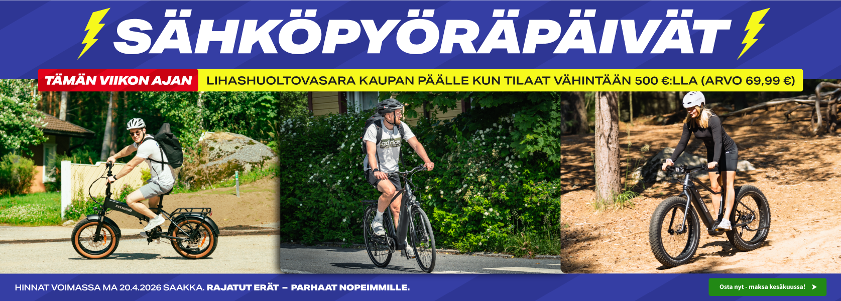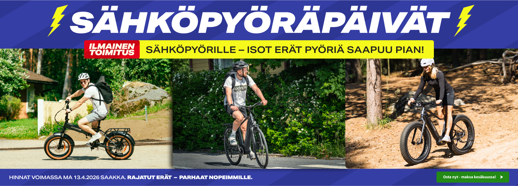 Myymälämme sijaitsevat Vantaan Viinikkalassa ja Tampereella Tesomalla helppojen kulkuyhteyksien päässä. Myymälöissämme on esillä laaja valikoima eri kuntolaitteita ja sähköpyöriä, joita voi tulla testaamaan paikan päälle.