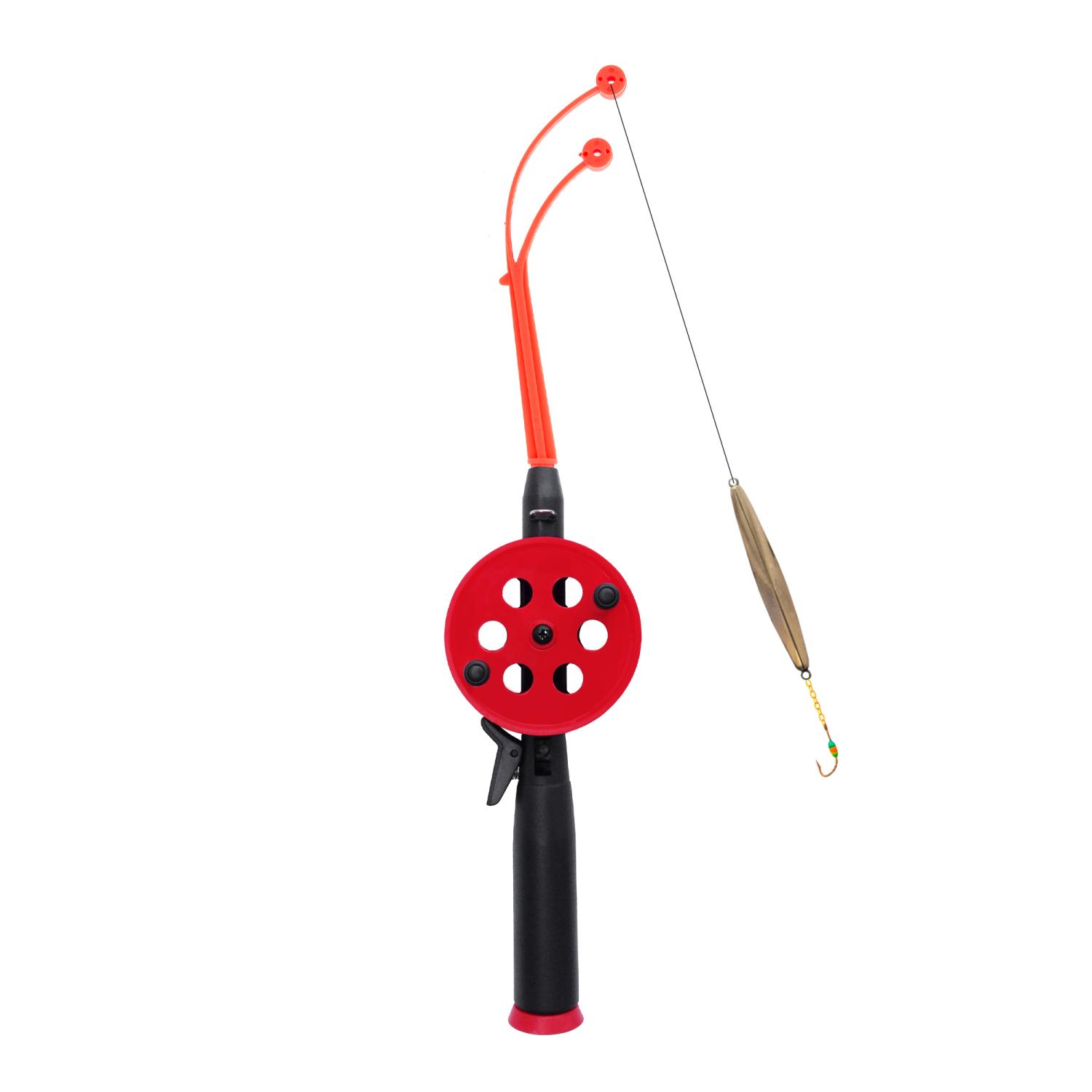 Kompakti Fisherman‑pilkkisetti, jossa 76 mm puola, kaksoiskärki, siima ja pilkki. Kestävä pilkkivapa muovikahvalla tarjoaa varman otteen talvikalastukseen.