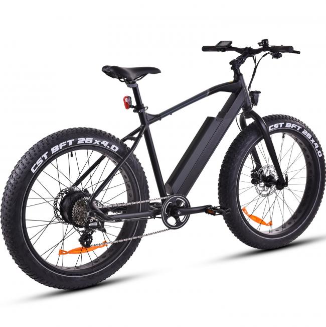 FitNord Rumble 300 -sähköfatbikella on huoletonta polkea pitkiäkin lenkkejä, sillä suurikapasiteettisella akulla pääsee sähkömoottorin avustamana jopa huikeat 120 kilometriä yhdellä latauksella. Tehokas Samsungin ja LG:n -kennoilla varustettu akku helpottaa myös arkikäytössä, sillä akkua ei tarvitse ladata välttämättä joka päivä. Tehokas akku on tarpeen myös talvikäytössä, sillä pakkanen voi laskea sähköpyörän akun tasoa jopa kolmanneksella. Akku on helppo irrottaa ja viedä sisälle lataukseen.FitNord Rumble 300 -sähköfatbiken voimakas takamoottori tekee polkemisesta vaivatonta niin ylämäessä, vastatuulessa kuin hankalissa olosuhteissa. Sähkömoottori on varustettu nykyaikaisella momenttitunnistimella, joka mittaa poljinvoimaa ja säännöstelee sen perusteella moottorin avustusta. Näin pyörä kuluttaa ketjuja ja rattaita vähemmän kuin keskimoottori, mutta tarjoaa huomattavasti luonnollisemman ajotuntuman, kuin normaali takamoottori. Miellyttävän tuntuman lisäksi momenttitunnistuksesta on hyötyä erityisesti poluilla, liukkaalla ja esimerkiksi vilkkaassa kaupunkiliikenteessä pyöräiltäessä, jossa ajo vaatii pyörän nopeaa reagointia. Sähkömoottorissa on 5 avustustasoa, joiden valinta tapahtuu ohjaustankoon kiinnitetyn TechDrive-näytön painikkeilla.