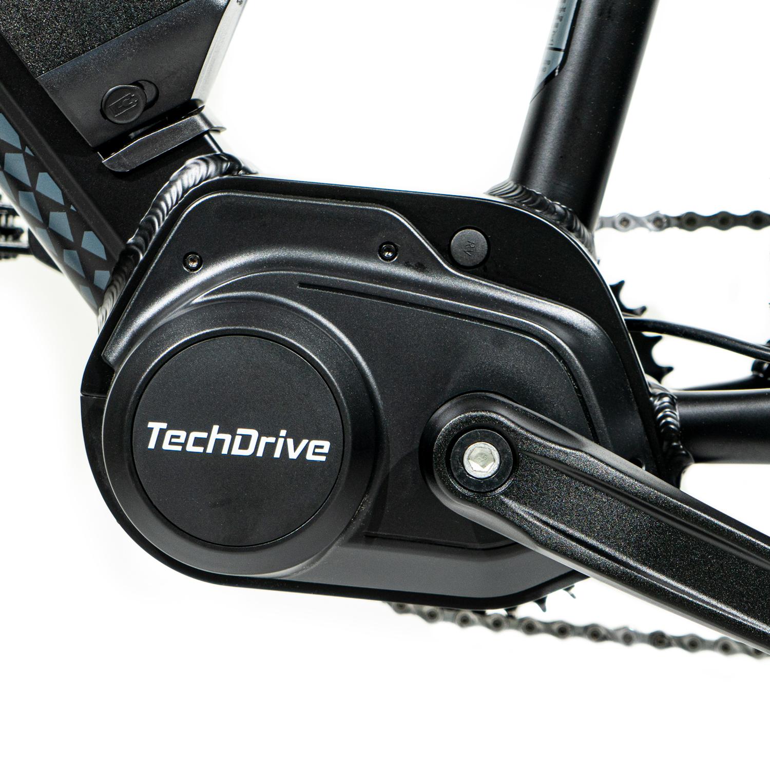 FitNord Rumble 500 on varustettu erittäin voimakasvääntöisellä 80 Nm TechDrive-keskimoottorilla, josta riittää kevyesti puhtia jyrkimpienkin mäkien ja upottavassa lumessa tai mudassa möyrimiseen. Keskimoottorin momenttitunnistin mittaa pyöräilijän käyttämän poljinvoiman ja säätää moottorin tehoa sen mukaan viiveettömästi. Tuloksena on äärimmäisen luonnollinen ja hallittava polkutuntuma, josta on erityisesti hyötyä maastossa, liukkaalla ja vaativissa paikoissa ajettaessa. Sähkömoottorissa on viisi avustustasoa, joiden valinta tapahtuu ohjaustankoon kiinnitetyn TechDrive-näytön painikkeilla. TechDrive-keskimoottorin edistynyt tekniikka minimoi virrankulutuksen, joten akku kestää pidempään.Poikkeuksellisen suurikapasiteettinen 690 Wh Samsungin ja LG:n -kennoilla varustettu akku kestää maastosta, avustuksen tasosta ja käyttäjän koosta riippuen jopa 140 kilometrin matkan. Massiivisen akkukapasiteettin ansiosta Rumble 500 sopii hyvin myös retkeilyyn, eikä akkua tarvitse välttämättä ladata joka päivä esimerkiksi työmatkakäytössä. Tehokkaasta akusta on suuri hyöty myös talvella, kun pakkanen syö sähköpyörien akkujen varausta jopa kolmanneksella. Akku on osittain upotettu Rumble 500:sen runkoon, josta se on helppo irrottaa lataamista varten.