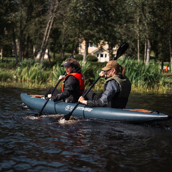 Vakaa ja ketterä FitNord Seal Two – Jopa 300 kg kantava ilmatäytteinen kajakki kahdelle ilman kuljetusongelmia!