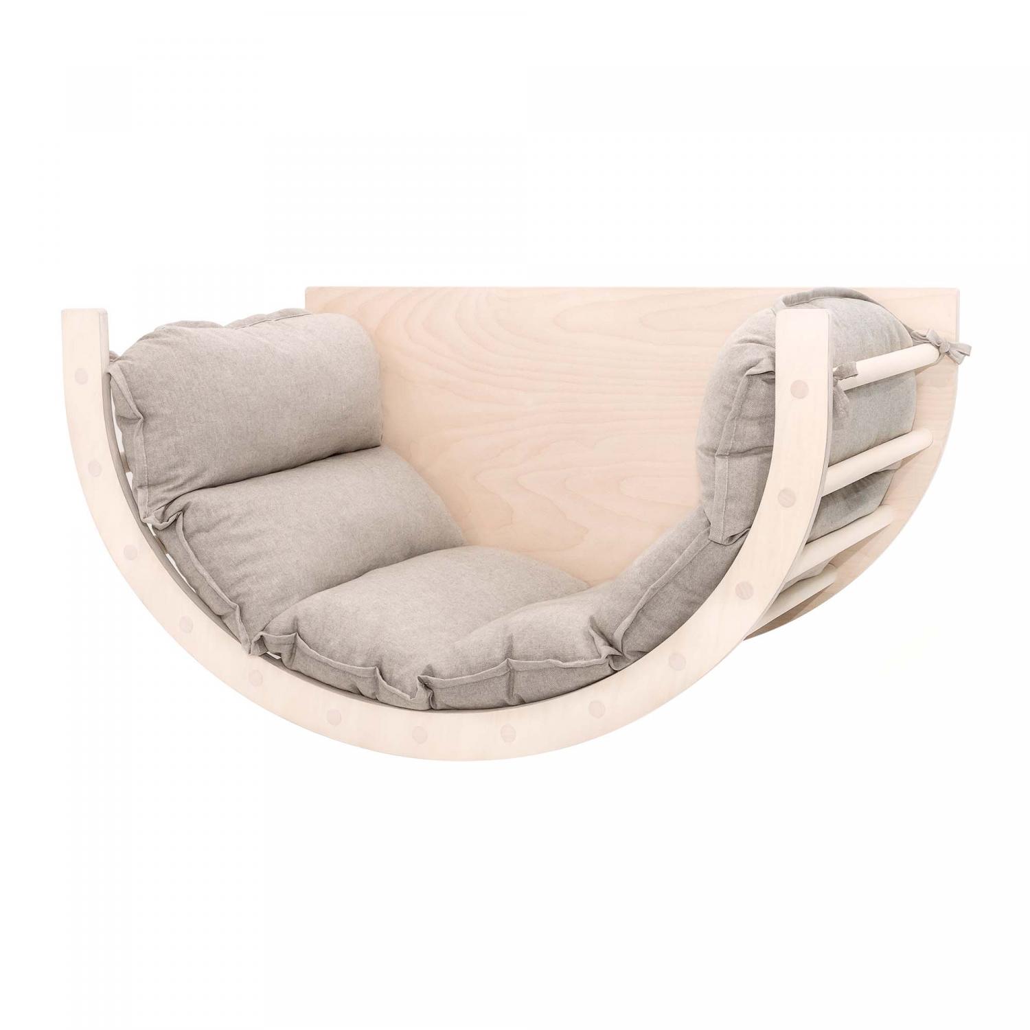 KAURA-pehmuste on suunniteltu käytettäväksi yhdessä LUOTO-kiipeilykaaren kanssa, kun kaari käännetään ylösalaisin ja sitä käytetään kiipeilyn sijaan kiikkuna. Pehmuste on pehmeä ja pöyheä, ja kiikkuminen sen kanssa on mukava, rauhoittava kokemus.