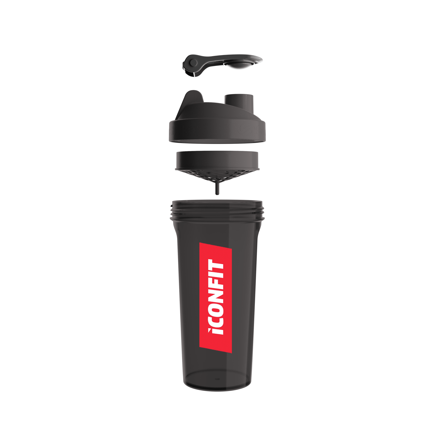 ICONFIT Shaker 800 ml (musta) – sekoittaa juomasi tasaisesti ja kulkee mukana treeneihin