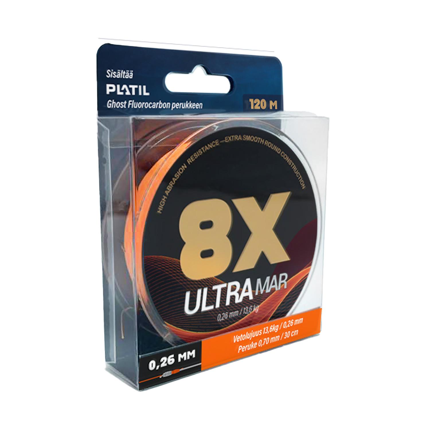 - UltraMar 8 X Kuitusiima +FC peruke Oranssi 120m - 0,14mm
