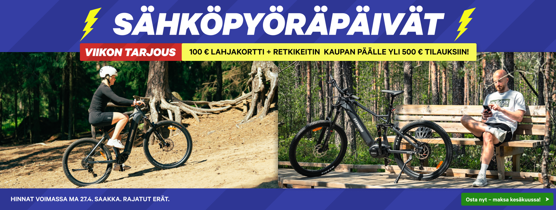 Valikoimistamme löydät laadukkaat FitNord ja Helkama -sähkömastopyörät monipuoliseen käyttöön. Mikäli olet kiinnostunut katu- ja polkuajon lisäksi möyrimään lumella, hiekassa ja mudassa, katso myös sähköfatbike-valikoimamme. Mikään valikoimassamme oleva sähköpyörä ei tarvitse liikennevakuutusta (lue lisää). Tutustu valikoimaan ja tilaa!