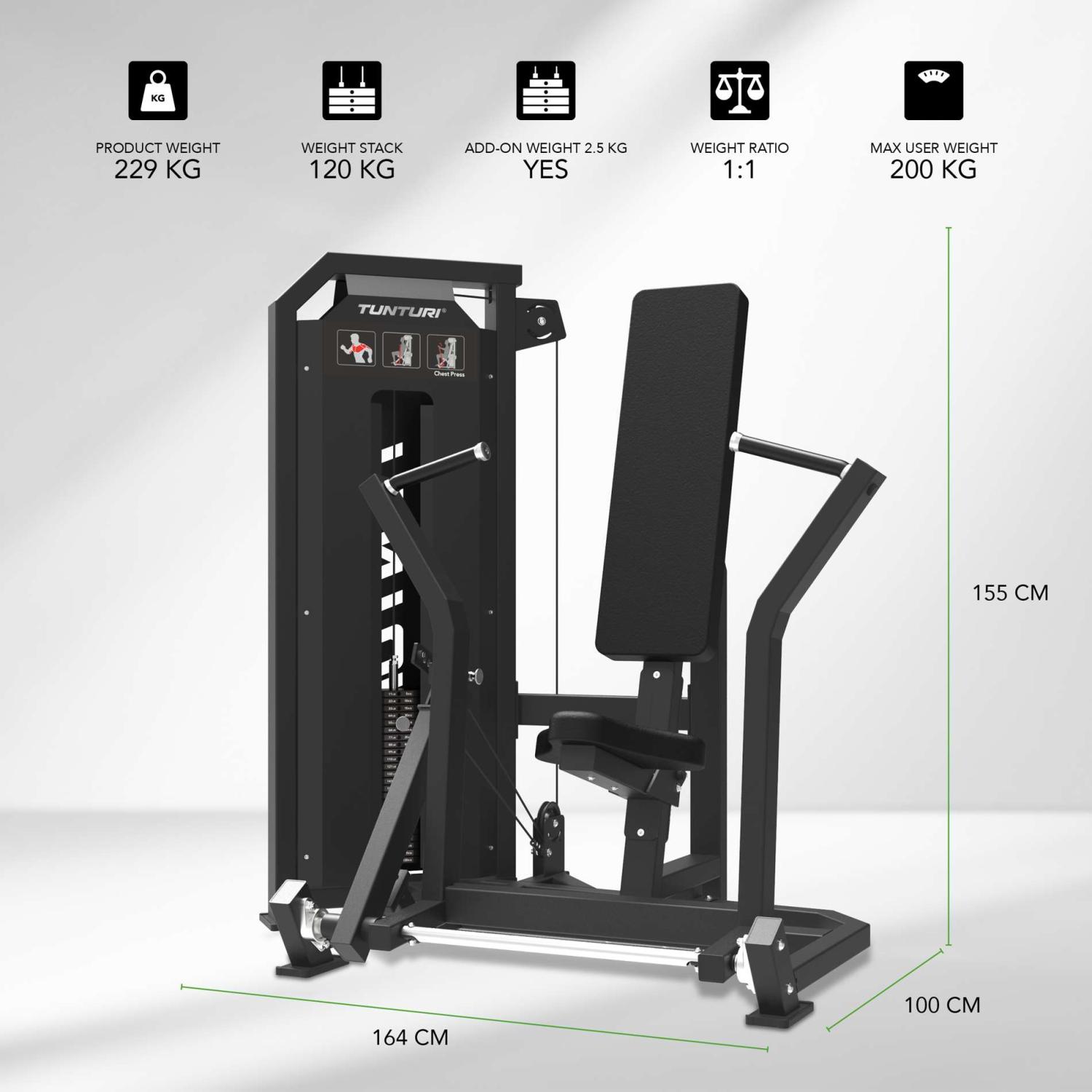 Haluatko kehittää rintalihaksia turvallisesti ja tehokkaasti? Tunturi Platinum Rintaprässi on suunniteltu ammattikäyttöön, ja se yhdistää voiman, ergonomian ja sujuvat liikeradat yhteen huippuluokan laitteeseen. 120 kg painopakka, viisi säädettävää aloituspositiota ja kestävä teräsrunko tekevät siitä olennaisen osan jokaista laadukasta kuntosalia.