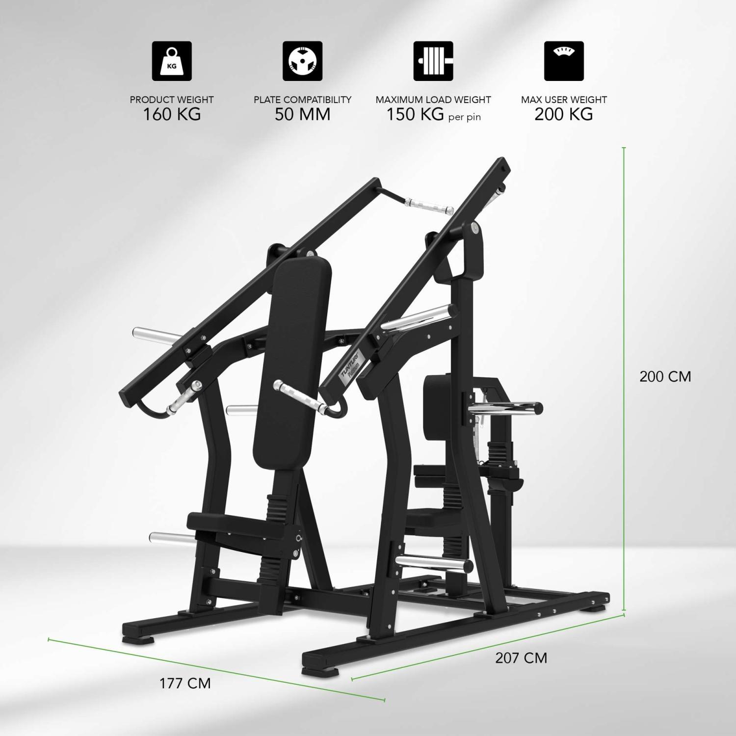Tunturi Platinum Rinta/Selkä Yhdistelmälaite tarjoaa kaksi harjoitusasemaa yhdessä kompaktissa ja vankkarakenteisessa laitteessa. Levypainokuormitus ja iso-lateraaliset vetovarret mahdollistavat luonnollisen, hallitun liikeradan sekä tasapainoisen lihaskehityksen. Tämä ammattitasoinen laite sopii täydellisesti kuntosaleille, urheiluseuroille ja tavoitteellisille treenaajille, jotka arvostavat monipuolisuutta ja voimaa samassa paketissa.
