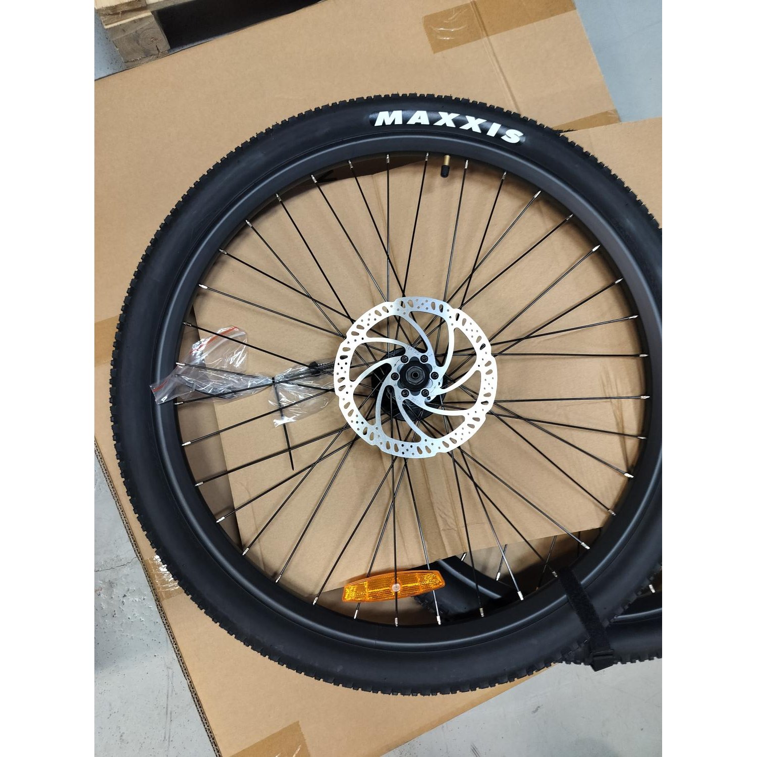 Etupyöräkokonaisuus - 27.5" vanne, pinnat, renkaat, jarrulevy (M300/500/900)
